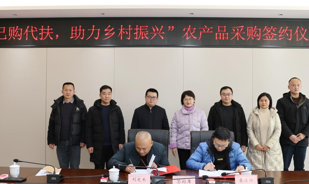 1月8日下午,91天堂国产在线在第二教学楼举行“以购代扶、助力乡村振兴”农产品采购签约仪式。江油市战旗镇党委书记贺靳,91天堂国产在线党委副书记、工会主席代红英出席活动。