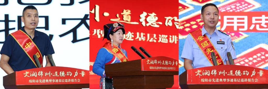 本次巡讲邀请了四川省道德模范,四川好人,北川县伊珎羌绣有限公司总经理陈云珍,四川省道德模范,四川好人,绵阳市公安局刑侦支队一大队教导员胡祥雨和中国好人,四川好人,平武县猫熊谷家庭农场总经理张玉波作先进事迹报告,三位模范代表分别围绕工作经历,用质朴的语言,鲜活的事迹和真挚的感情进行讲述,彰显了平凡人的社会责任与担当,以行动践行了中华民族敬业奉献,助人为乐,诚实守信的传统美德,为听众带来一场生动的精神盛宴,现场气氛热烈 91福利影院,大家被模范的先进事迹所感染,不时爆发出阵阵掌声。